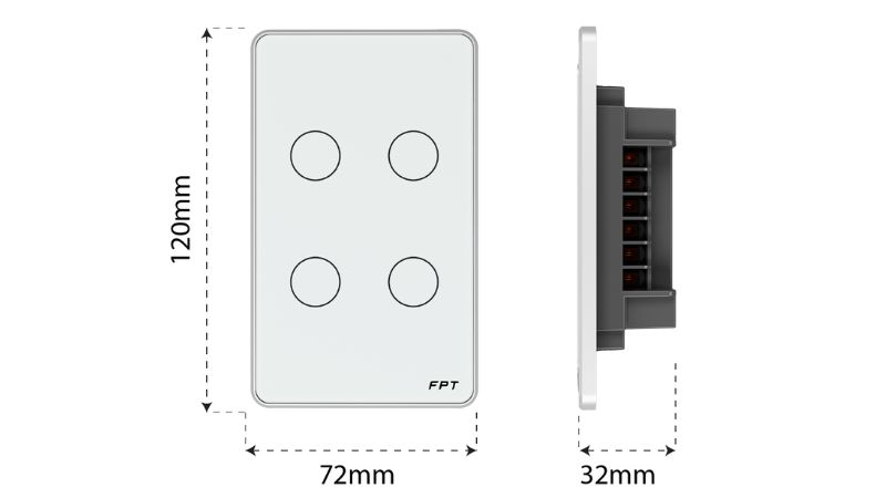 Thiết bị tương thích hoàn toàn với đế âm tường chuẩn chữ nhật phổ biến tại Việt Nam. Người dùng có thể lắp đặt nhanh chóng mà không cần đục tường hay thay dây điện, giúp tiết kiệm thời gian và chi phí thi công.